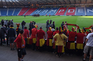 Dit was heel fijn, je staat dus zeer dichtbij en met zeer weinig publiek. Je ziet Hazard op blote voet het plein afhinkelen en ’s avonds komt dan het bericht dat hij gekwetst is. De “oude” klassevoetballers (je herkent ze toch) zitten tussen de supporters en staan open voor een babbeltje.